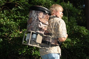 advertised. I have found four different hunting strategies that I can use with the help of the Action Back — (1) using it as a walking feeder for C’Mere Deer’s 3-Day Harvest, Shake-n-Take, and corn to chum up an area on which I want to sit, (2) hanging it from a tree stand and using the remote control from my ground blind to spread feed whenever I want, (3) Attaching it to a vehicle and using it as a spreader while driving, and (4) as a swivel seat for bow hunting from the ground. I can think of at least two other future uses as well. My hat is off to Dave Cotham and Compass Game Works. This is a tool with many uses that hunters across the country will find very useful!”